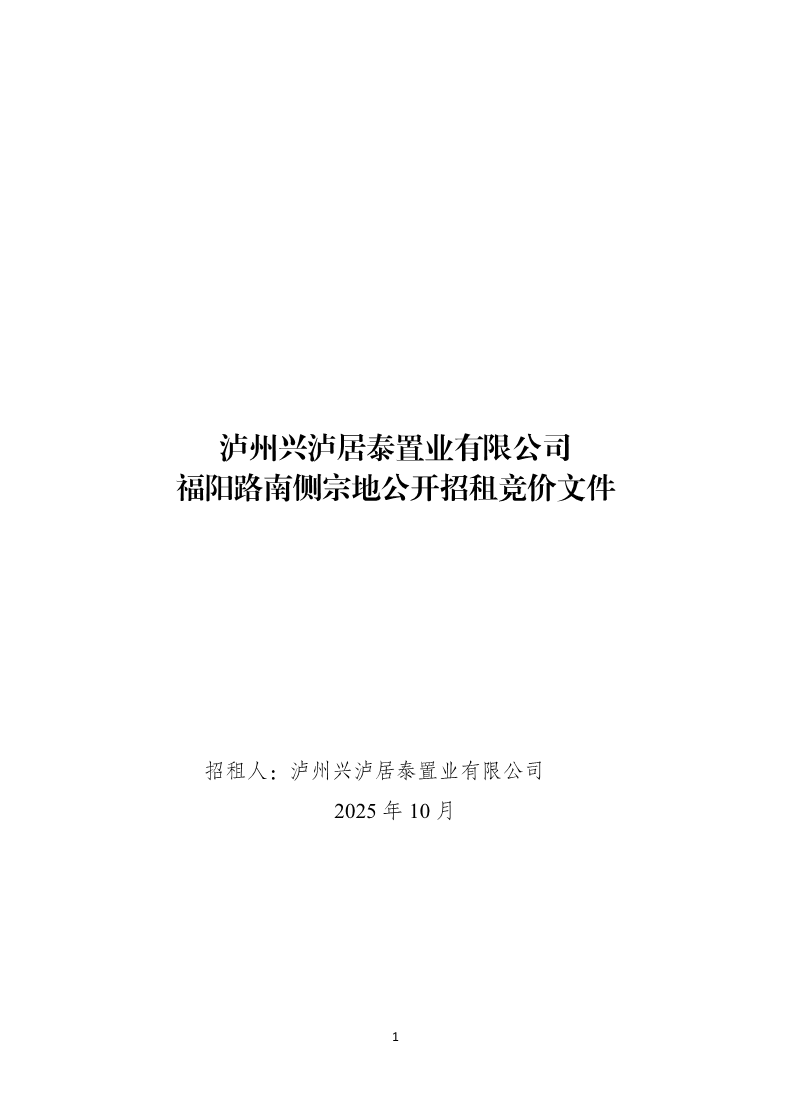 泸州兴泸居泰置业有限公司福阳路南侧宗地公开招租竞价公告